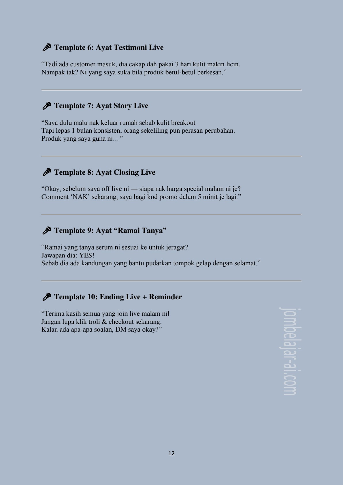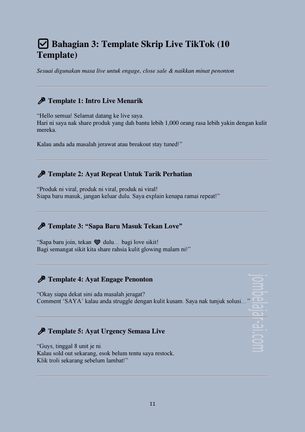 ✓Bahagian 3 : Template Skrip Live TikTok (10 Template) (Halaman 11-13)